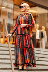 Nayla Collection - Püskül Detaylı Desenli Tesettür Elbise 3195DSN
