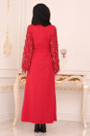 Nayla Collection - Püsküllü Kırmızı Tesettür Elbise 40640K